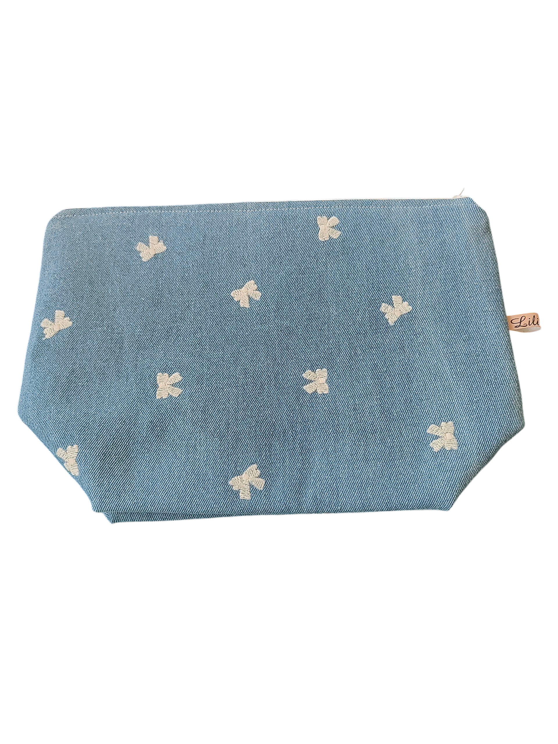 Kosmetiktasche-/Jeans-Schleifen/Blau-Rosa